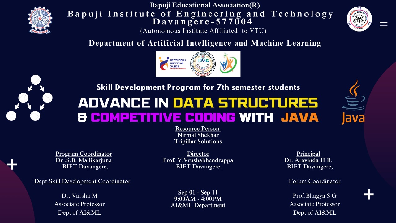 Department has organized a Skill Development Program on “Advance Data Structures & Competitive Coding with Java” for 7th semester students in association with Tripillar Solutions from 01-09-2025 to 11-09-2025.