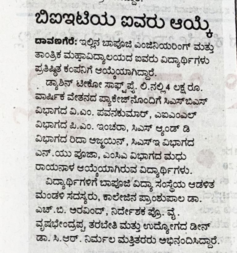 ಬಾಪೂಜಿ ಇಂಜಿನಿಯರಿಂಗ್ ಮತ್ತು ತಾಂತ್ರಿಕ ಮಹಾವಿದ್ಯಾಲಯ, ದಾವಣಗೆರೆ-577004