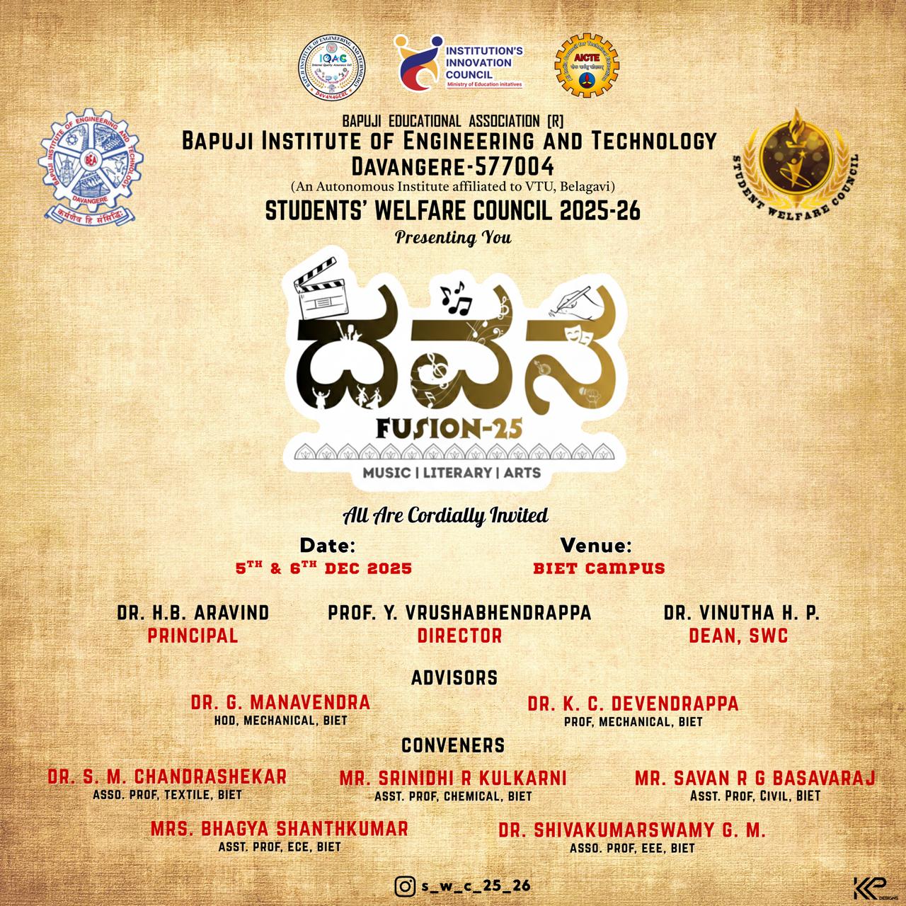 Organized by the Students’ Welfare Council 2025-26, BIET Davangere