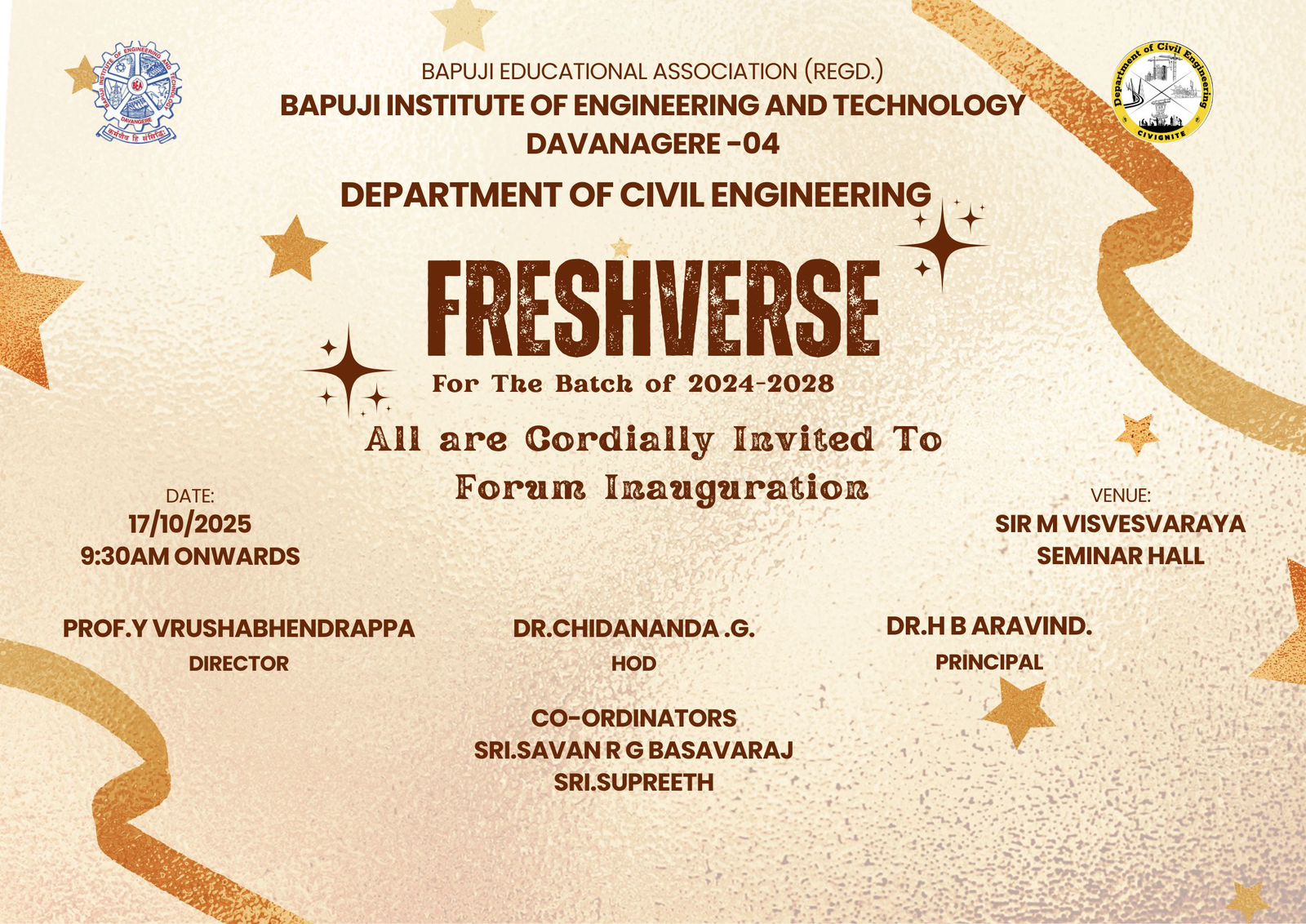 Department of Civil Engineering, BIET welcomes Third semester students of batch 2024-28, by celebrating FRESHVERSE - Forum Inauguration and Fresher's day
