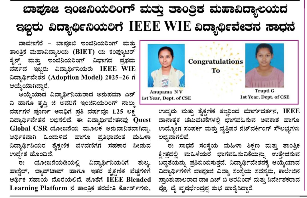 ಬಾಪೂಜಿ ಇಂಜಿನಿಯರಿಂಗ್ ಮತ್ತು ತಾಂತ್ರಿಕ ಮಹಾವಿದ್ಯಾಲಯ, ದಾವಣಗೆರೆ-577004